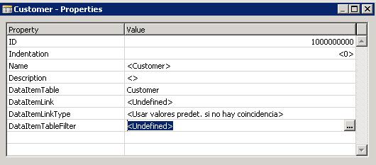 - Sobre la línea del Dataitem Customer, acceder a sus propiedades (MAY + F4)