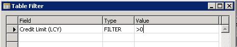 - En el DataItemTableFilter indicar que se desea filtrar por aquellos clientes cuyo límite de crédito es superior a cero
